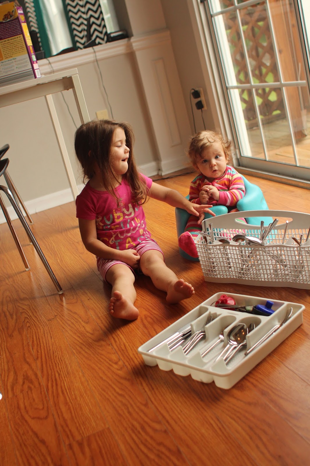 Ruby also didn't waste any time filling the roll of "oldest" at home and immediately started teaching Harlow the ins and outs of what it takes to put the silverware away.