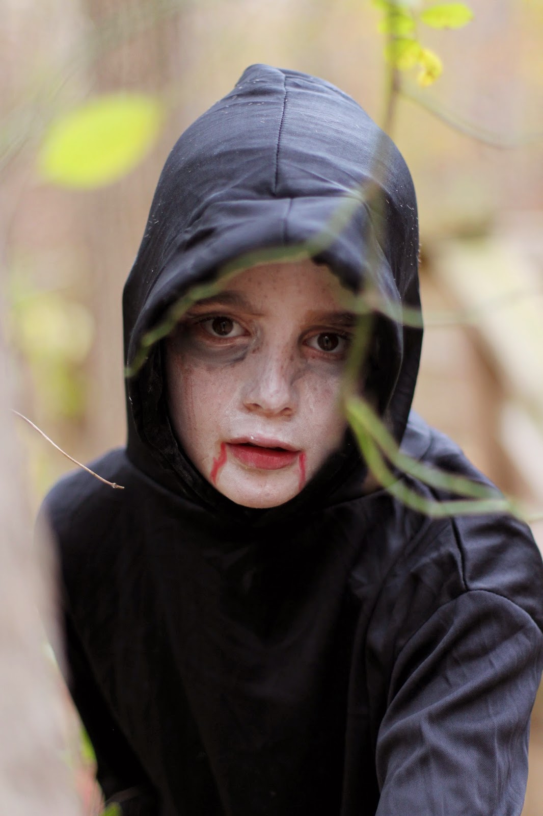 From cute to creepy. Reed insisted on being something truly scary this year. Some of his suggestions were a little too disturbing for me and I really don't like masks, so this was our compromise. I personally think he nailed it.